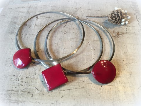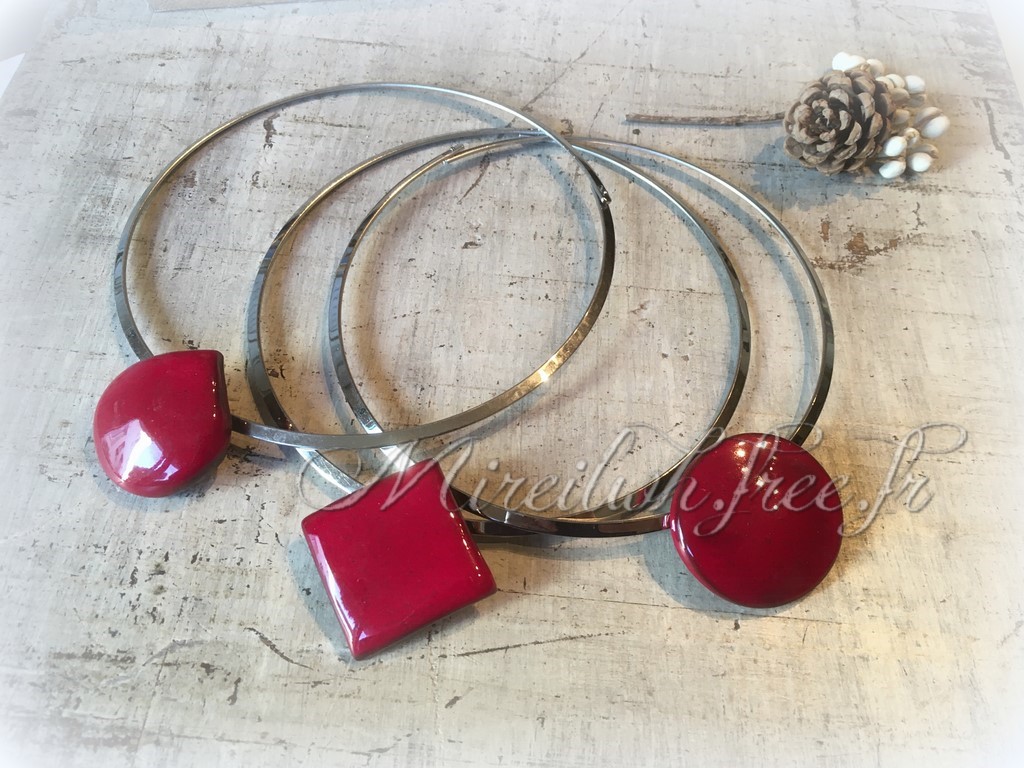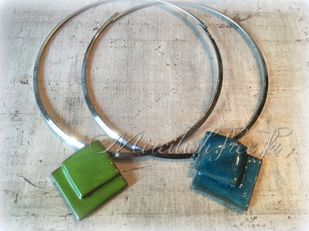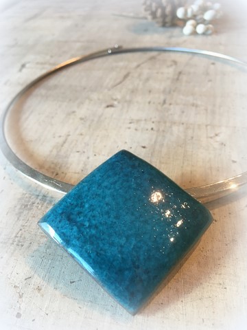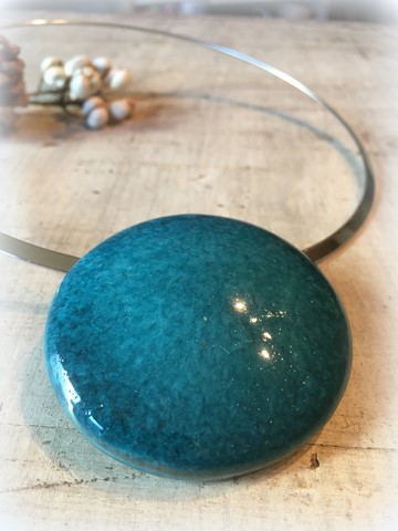 Tour de cou en acier inoxydable et pendentif en céramique. Tailles, couleurs et formes variées.